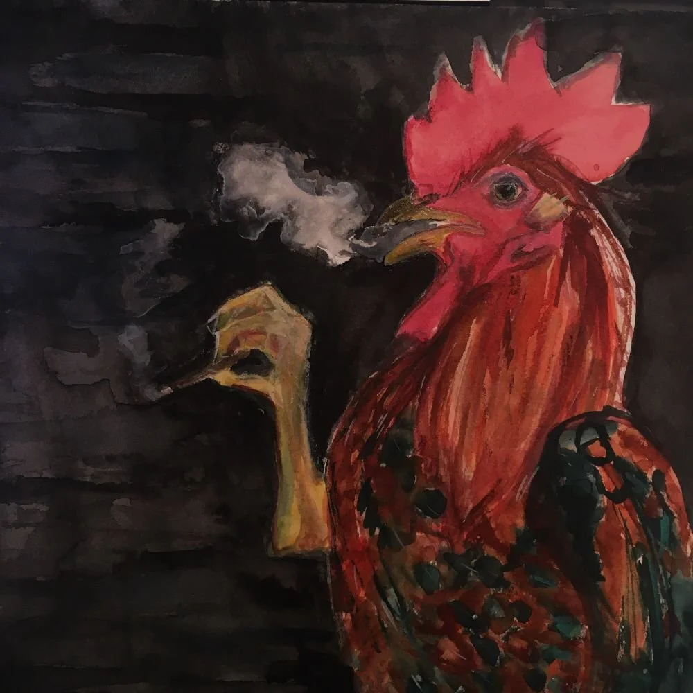 Nearly all chickens painted with Kuretaki Gansai Tambi on 7x7 inch cold press paper. A few of them are larger and on different paper. Why chickens?